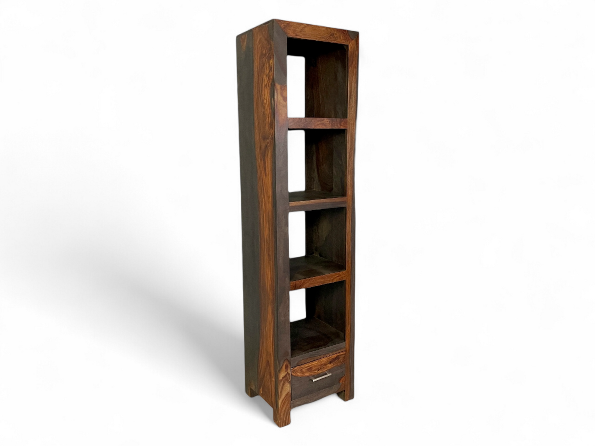 Ajoutez une touche de sophistication à votre intérieur avec la bibliothèque Maliris en bois de rose, un meuble alliant design raffiné et fonctionnalité. Avec ses quatre tablettes et son tiroir pratique, elle offre une solution de rangement idéale pour vos livres, objets décoratifs, et autres accessoires. Elle est disponible en deux couleurs.