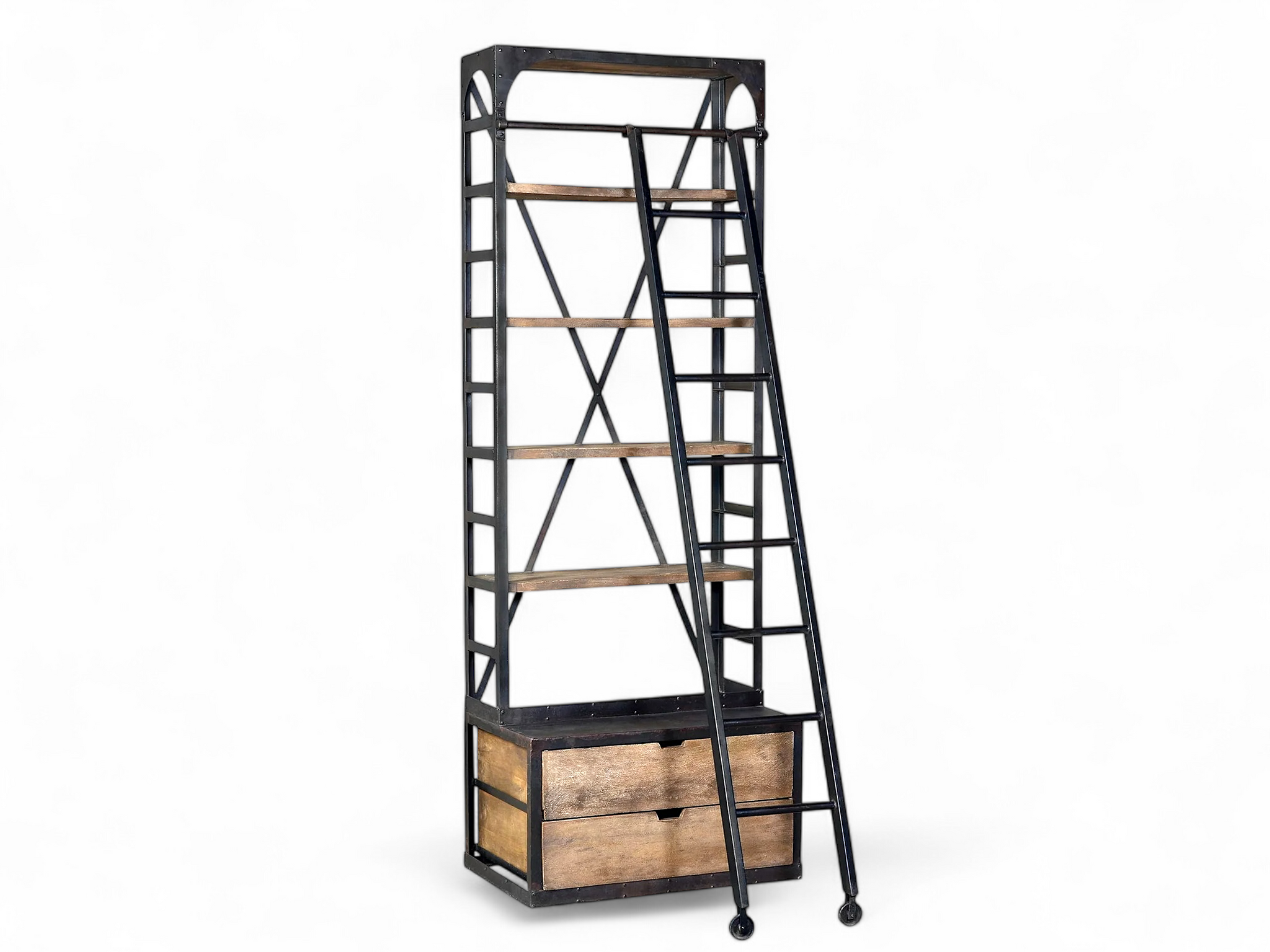 Ajoutez une touche d’élégance durable à votre espace avec la bibliothèque Asa. Fabriquée en bois de manguier et métal, cette pièce robuste combine charme rustique et style industriel. Avec ses quatre tablettes, ses tiroirs spacieux et son échelle fonctionnelle, elle est idéale pour organiser vos livres, objets de décoration ou accessoires tout en embellissant votre intérieur.